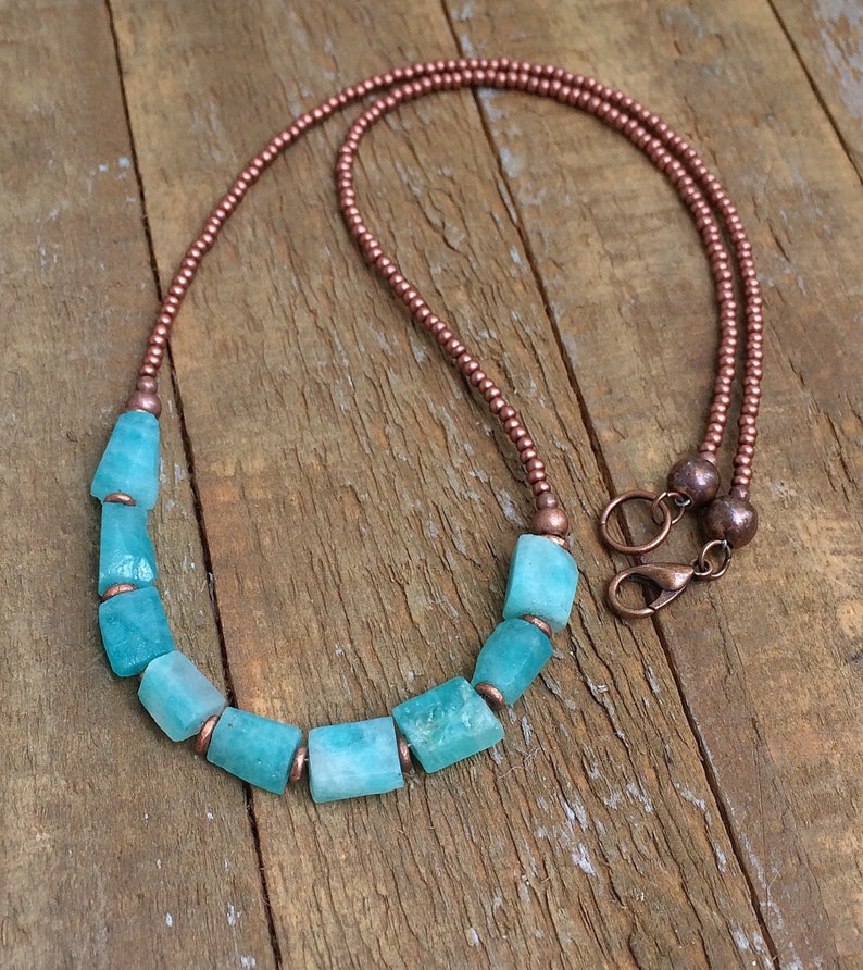 Amazonite Raw Green Stones Identification : Blue Raw Amazonite Necklace Amazonite Jewelry Boho Beaded ..., It is a source of confidence, communication, creativity and peace.